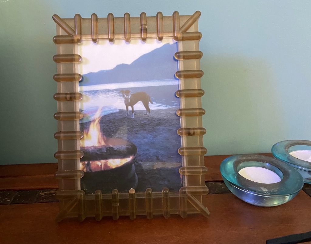 If you read the first section of this post, you might wonder at my casual attitude toward Darby’s swollen face in his final days and his propensity to eat odd things.  We have a fantastic, framed picture our friend Lisa took of Darby on a multi-family vacation years ago, as he watched sparks pop off of logs in a campfire, trying to catch them in his mouth.  In the photo, he stares intently at the fire pit, waiting with heightened focus for another cluster of orange cinders to blast off in all directions.  If you didn’t know what was actually happening in the photo, you might mistake Darby for trying to unlock the secret of fire, as opposed to waiting for a mildly painful, probably wholly unsatisfying snack.