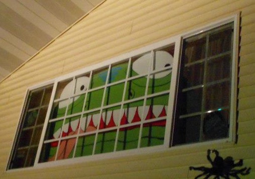From the back–all blacked out and much less sloppy–note, I am talking about the tombstones and zombies, not the deplorable state of my landscaping.